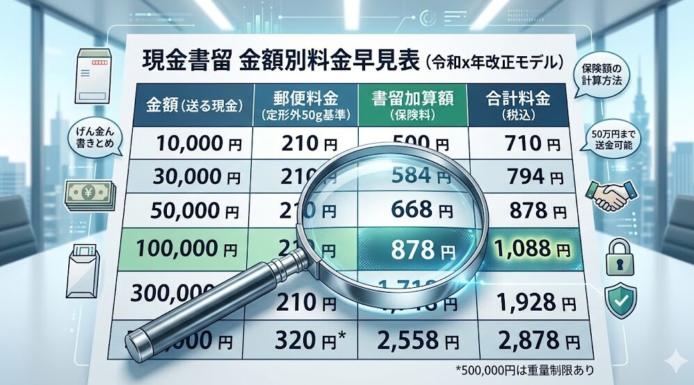 - 現金書留の料金表は?10万円送付時の正確なコストを算出