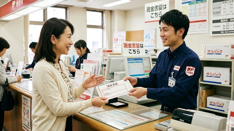 いざ郵便局の窓口へ行き、10万円の入った封筒を差し出す際、どのようなやり取りが行われるのかを事前に知っておけば、緊張することなくスムーズに手続きを進めることができます。