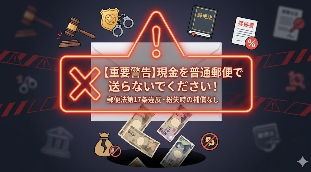 「わざわざ専用封筒を買うのが面倒だから」「現金書留の手数料が高いから」といった理由で、普通の普通郵便で現金を送る行為。実はこれ、単に「補償がないから危ない」という個人的なリスクにとどまる話ではありません。明確に日本の法律に抵触する行為なのです。