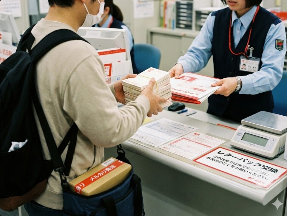 私が最もおすすめしたいのが、このテクニックです。半端な枚数のハガキを、フリマアプリの発送で大活躍する「レターパック」に変える錬金術です。