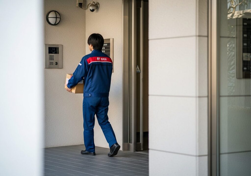 7. オートロックマンションの壁: 不在時にエントランスを解錠できない構造では、玄関前への置き配は物理的に不可能です。