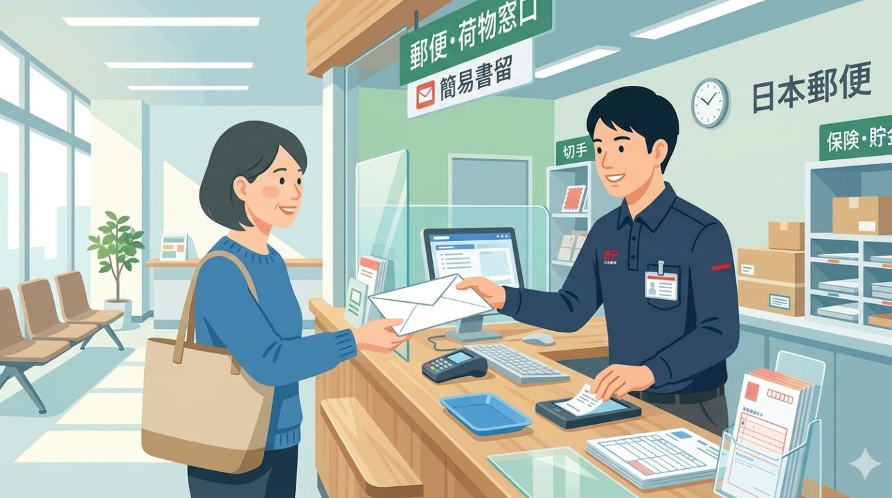 - 郵便局の「郵便窓口」に行きます。(ゆうちょ銀行の窓口ではありません)
