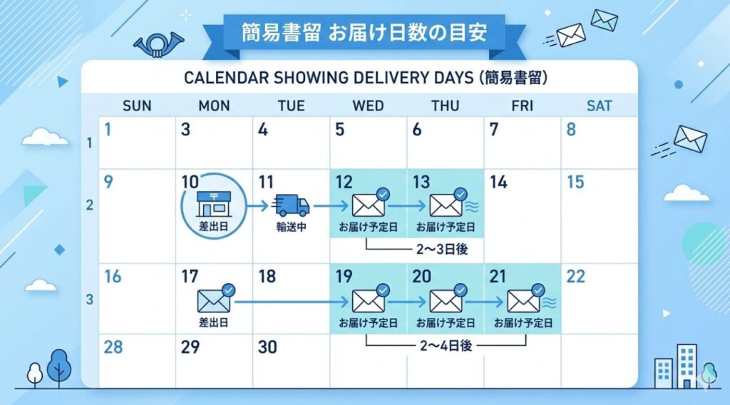 簡易書留は何日で届く?郵便局の配達日数の目安と土日・年末年始の対応