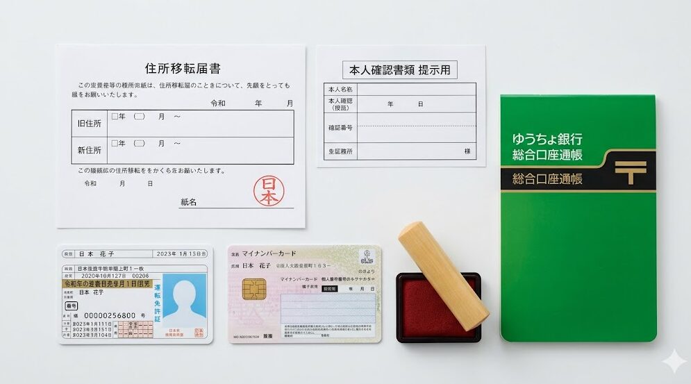 通帳、印鑑、本人確認書類などゆうちょの住所変更に必要なもの一式