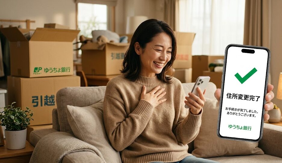 ゆうちょの住所変更手続きがスムーズに完了して安心する様子