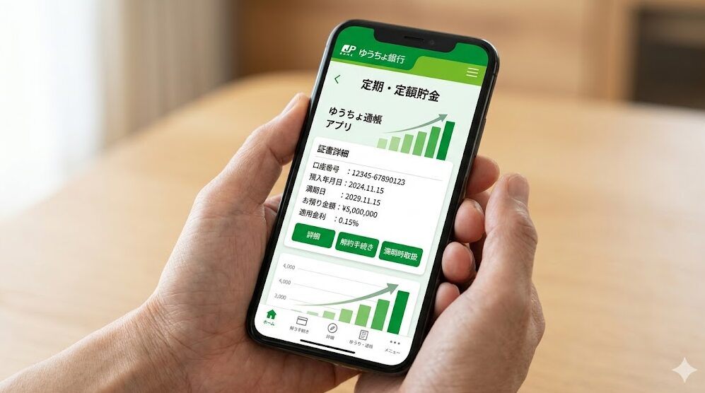 金利の適用メカニズムも独特です。定額貯金は預入時の金利が適用されますが、預入期間が「6か月以上1年未満」「1年以上2年未満」「3年以上」と長くなるにつれて、適用される利率が段階的に高くなる(または預入時の高い利率が適用され続ける)仕組み(段階金利)を持っています。現在の正確な利子を含めた評価額を知りたい場合は、ゆうちょ銀行の窓口で照会するか、後述する「ゆうちょ通帳アプリ」や「ゆうちょダイレクト」を利用することで、現在の正確な資産額を確認することができます。