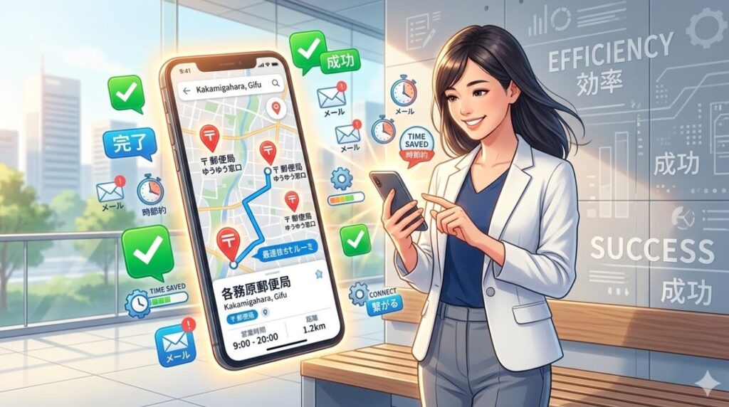 多くの人は、郵便局の営業時間に自分のスケジュールを合わせようとします。 「17時までに仕事を切り上げなきゃ」「昼休みに走って行かなきゃ」……。 しかし、ゆうゆう窓口がある場所を把握していれば、その必要はありません。 「仕事が終わって、夕食を済ませて、落ち着いてから20時に出しに行こう」という選択肢が生まれるのです。 この心理的余裕は、忙しいビジネスパーソンにとって計り知れない価値があります。